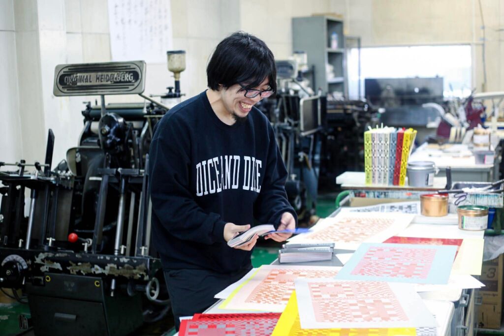 印刷立ち会い時にこんなふうな言葉を連発し、まるで少年のような表情を見せてくださったのはグラフィック&タイプデザイナーの永尾仁さん。